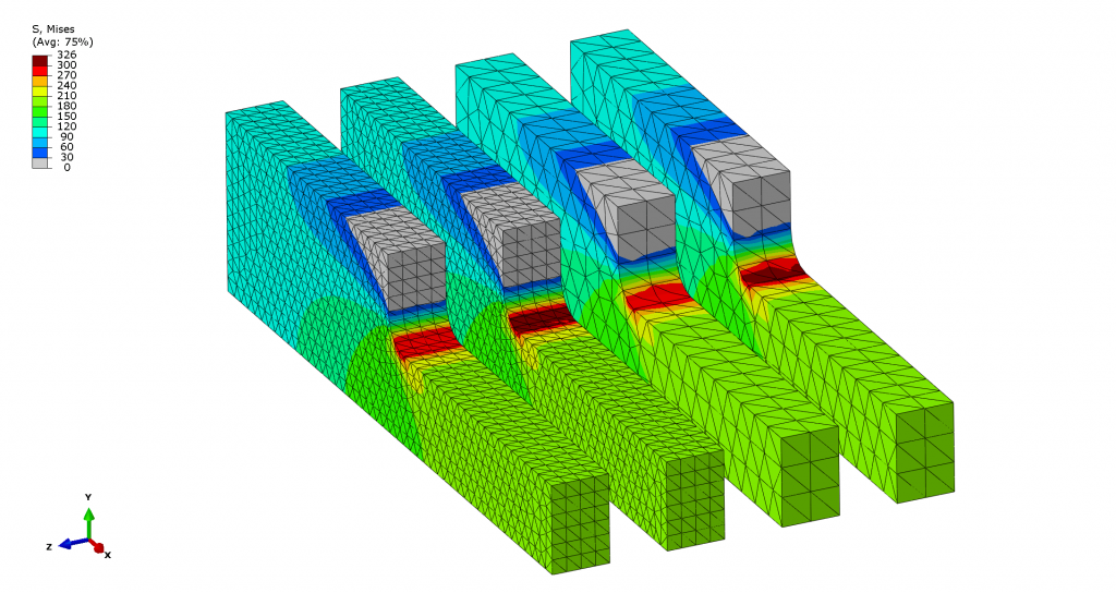Without going too much into the details, users must know that displacement is the first quantity computed using FEM as it currently exists. This displacement is calculated at the nodes, and therefore Abaqus can easily create contour plots of displacement without the need for a special “improved surface displacement” element. Other nodal quantities are forces of any kind (for e.g., reaction forces) and temperature. To calculate stress from this displacement, the software first needs to compute the strain.