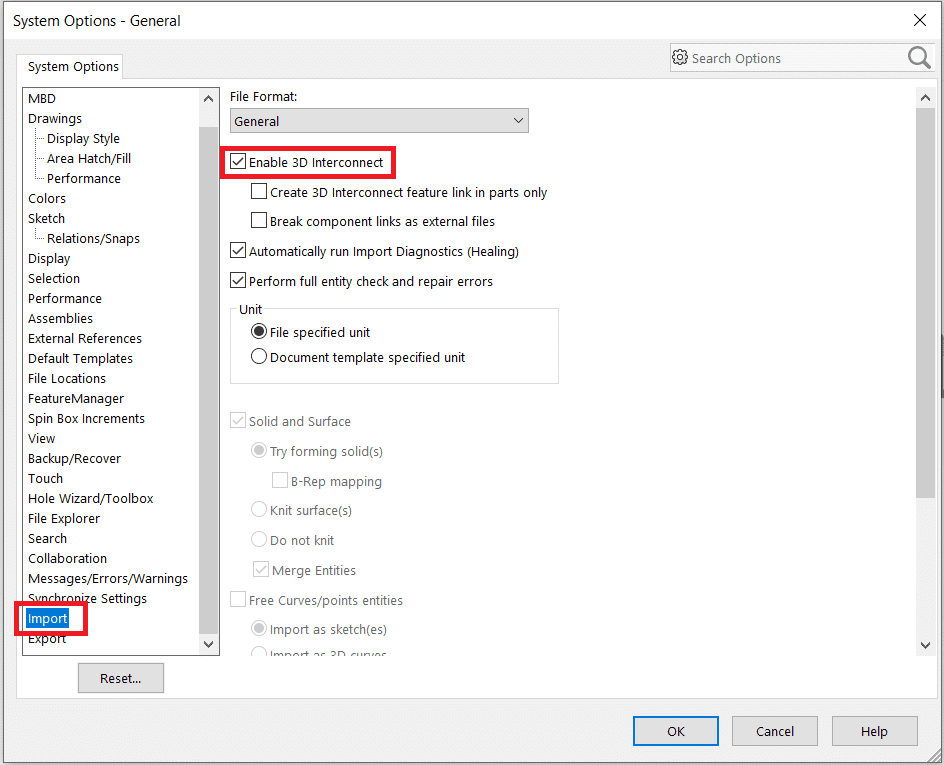Navigate to the “Import” section in “System Settings” to enable 3D Interconnect as shown in the image below:
