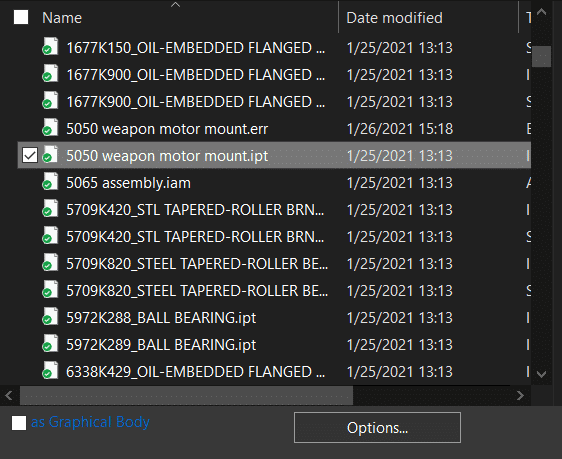 Next, we’re going to import an Inventor part file made by a friend of mine for a combat robot. This part was designed with UHMW plastic in mind: