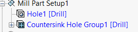 When recognizing features for my first part setup (on the “top” of the part as shown above), it does not fully capture what needs to be done, however the bulk of the work is captured – a boring operation and a group of countersunk drills: