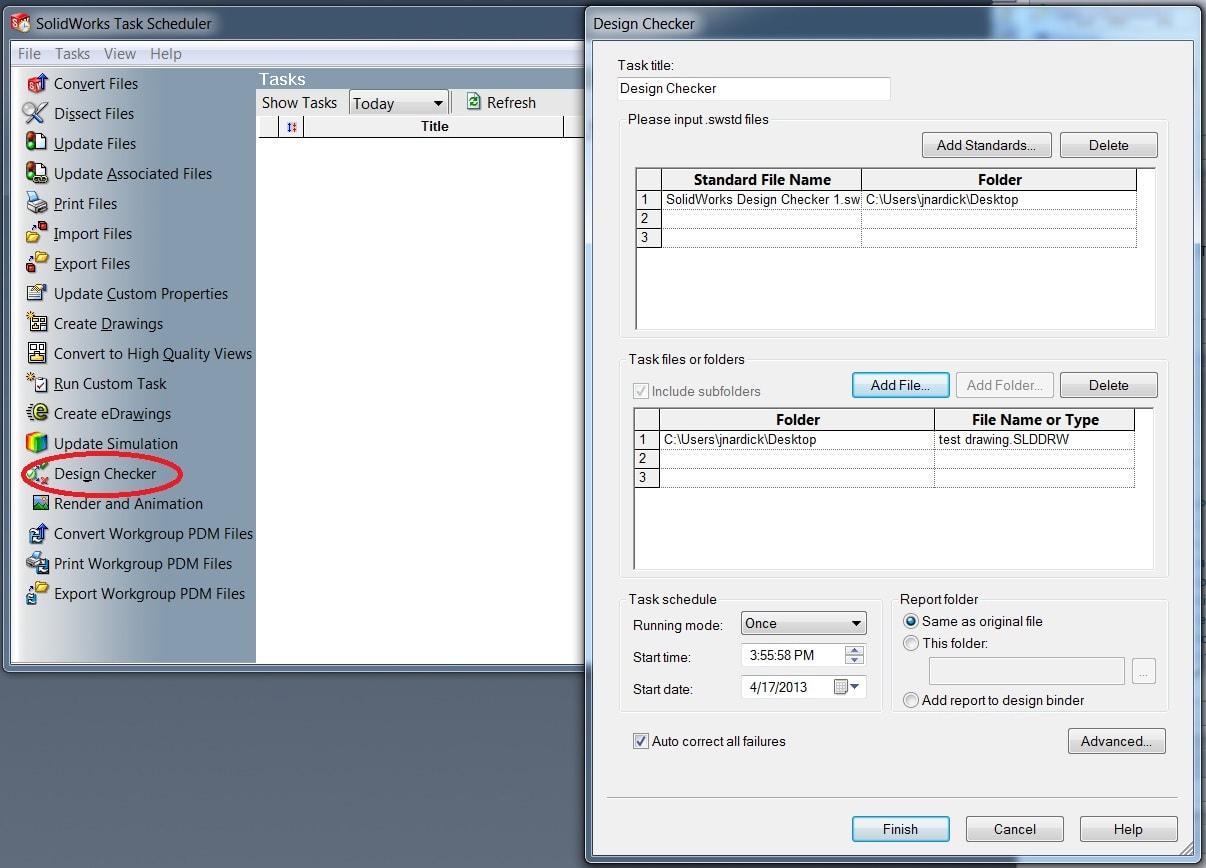 4, Create a task scheduler task to run the design checker for the folder with your drawings.