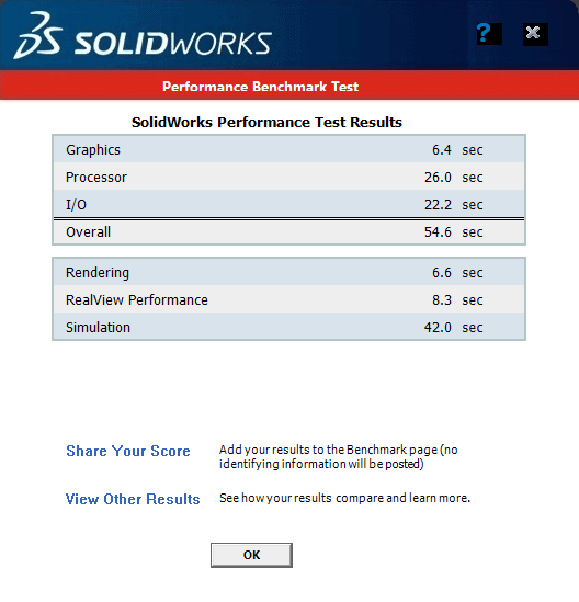 I also ran the benchmark utility in SOLIDWORKS Rx.