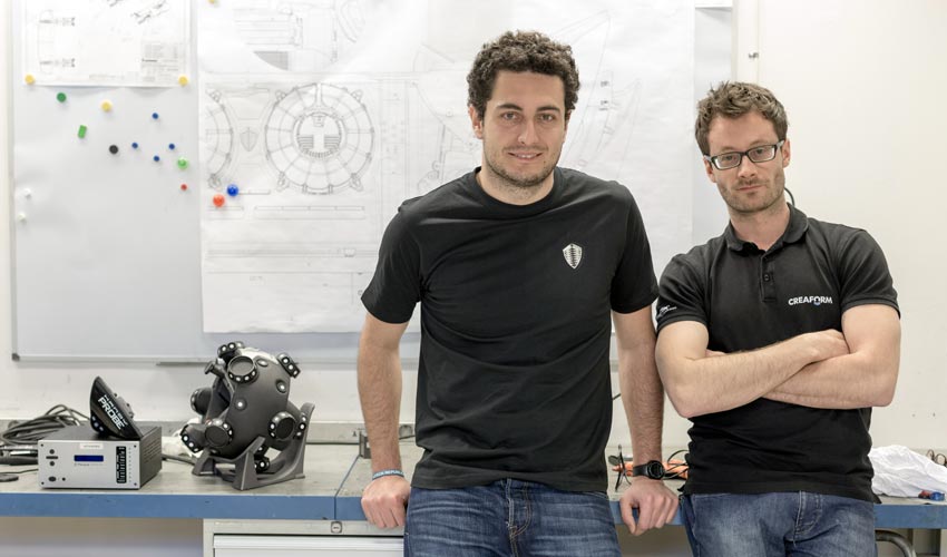 Eduardo, Koenigsegg’s composite engineer, with Louis-Olivier, Creaform’s technical expert.