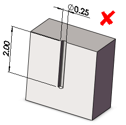 Holes with small diameters (less than 3.0 mm) or high depth-to-diameter ratios (greater than 2.75) are difficult to machine and are not recommended for convenient mass production. Deeper holes also make chip removal more difficult if the hole is blind.