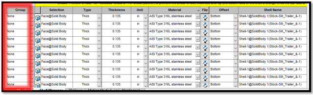 Now we all know that some of our parts fail due to a high load in the simulation study. We typically need to redesign parts to make them stronger. Not so with shell elements; all that is needed is to modify the group and increase the thickness or switch to a stronger material and run a new study. All bodies attached to this group will have this new thickness and are now more likely to withstand the force without failing.