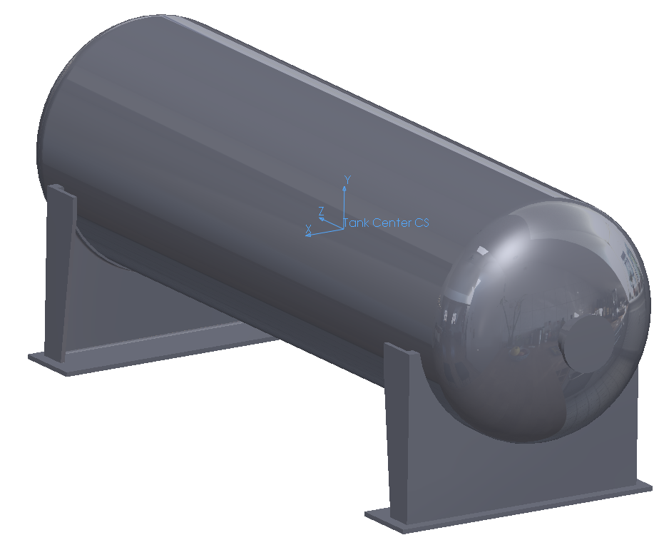 In a previous post “SOLIDWOKS Simulation – Nonuniform Force and Pressure Loading“, I showed how to apply a nonuniform pressure boundary condition to analyze the integrity of the glass walls of an aquarium. We varied the water pressure with depth by referencing a rectangular coordinate system (CS). Let’s look at nonuniform pressure loading using the second option for nonuniformity, a cylindrical CS. We’ll examine the steel horizontal storage tank shown below (approximately 4 ft. diameter by 12 ft. long) exposed to a hurricane-force wind of 90 MPH impacting the tank from the side.