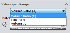 With the desired valve location highlighted, we can instruct the program to open the valve based on one of two manual controls, Volume Ratio (%) or Time (sec), or use an automatic mode in which the control valve opens when the melt front passes the gate.