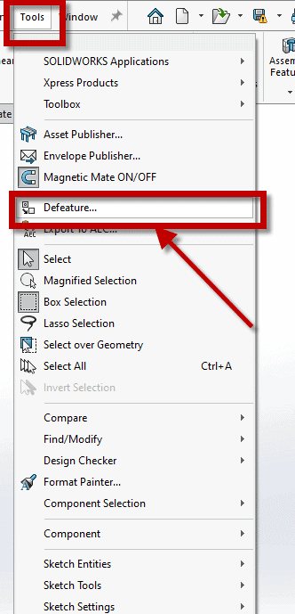 Go to tools -> Defeature