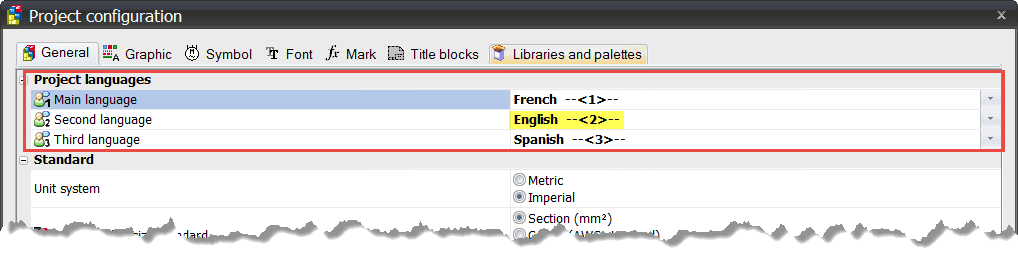 When considering what languages can be used, Figure 2 shows what languages are available within the schematic design itself. The method of changing languages in SOLIDWORKS Electrical requires that the language information is available in the meta-data of the project. This can include information such as project, sheet, and manufacture descriptions. The primary language of the project will be selected and the meta-data of the selected language will then be propagated to all locations where a language description can be set.