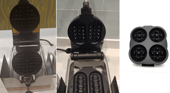 There are, of course, other pitfalls to the molding process. Occasionally, the part (waffle) hangs on the wrong side of the injection mold tool (waffle iron).