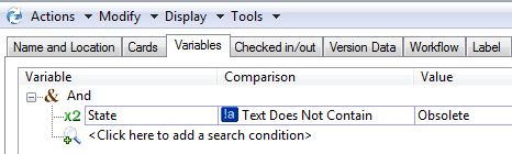 Now you can tell your search routine to filter out all files except those where the “State” variable equals “Obsolete” You can do this by creating a search favorite with this setting: