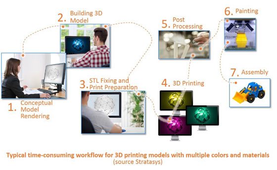 By forming a direct bridge between Adobe Photoshop CC and the Objet Connex3, Stratasys Creative Colors Software enables you to 3D print your most imaginative creations without those old, cumbersome, painful 3D printing workflows. So what used to work like this: