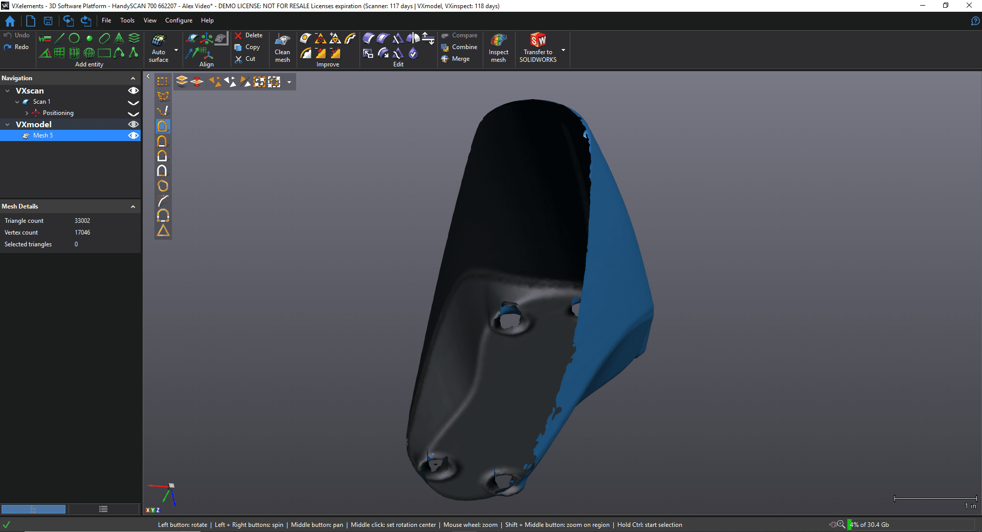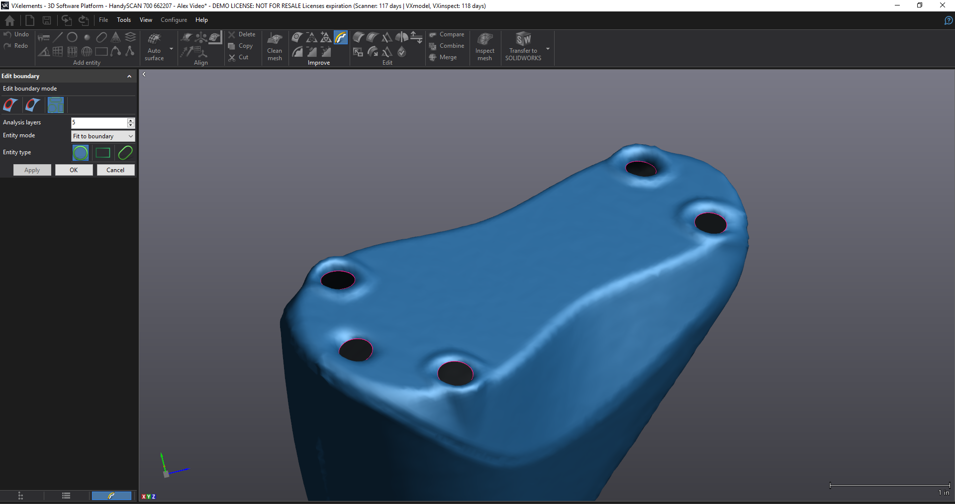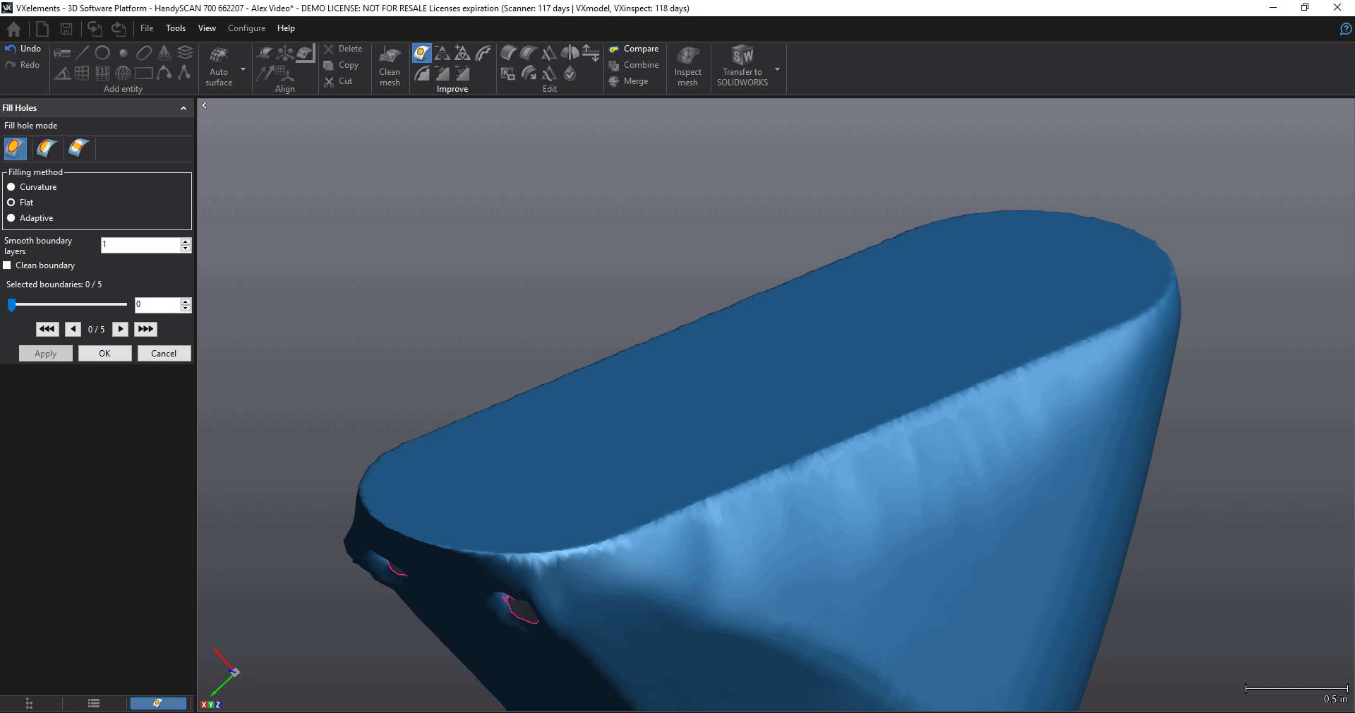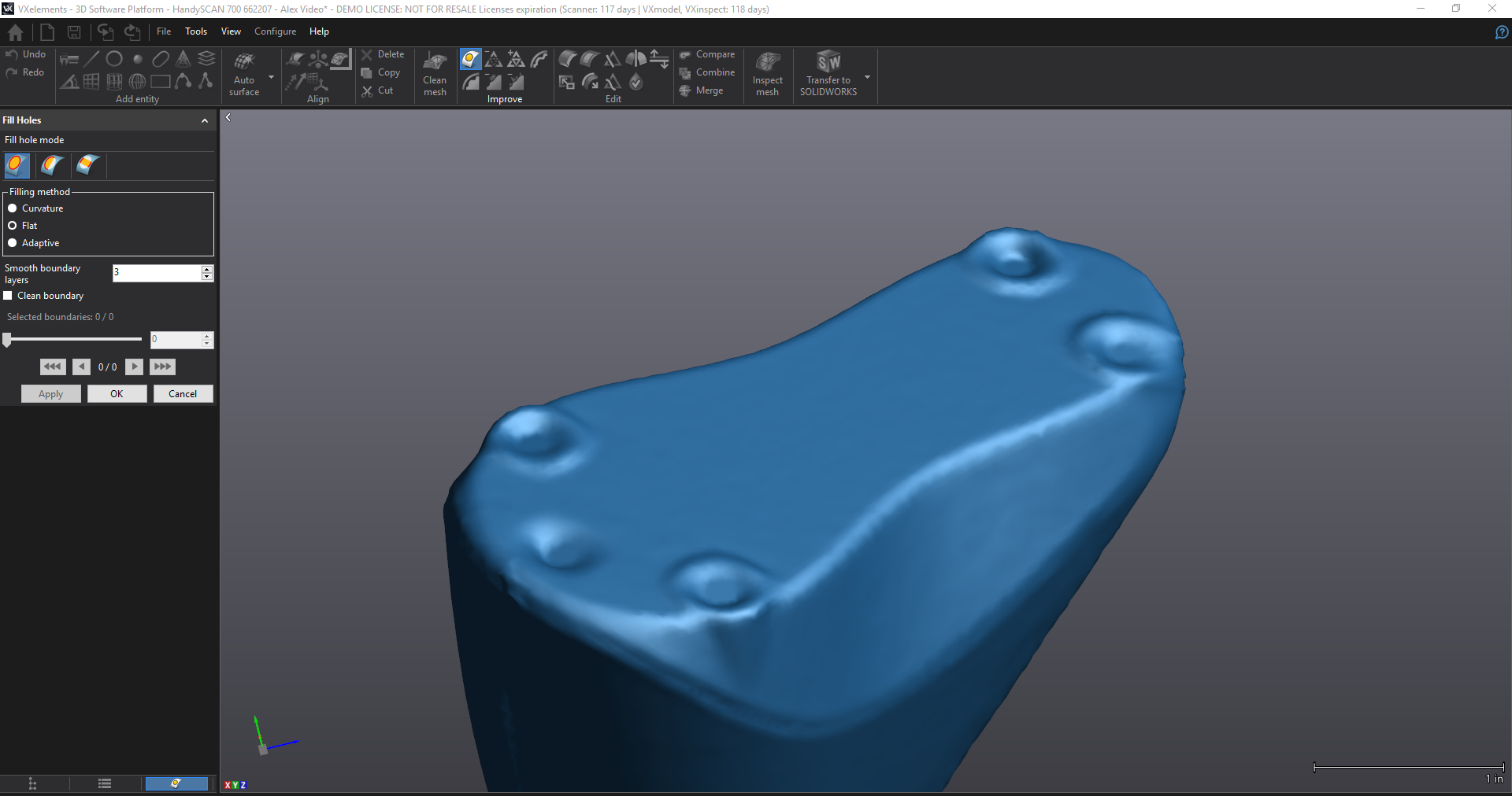 Anyone familiar with 3D scanning knows that small holes in your scan are inevitable. Whether they are screw holes, pinholes, countersunk, or counterbore, you just can’t always capture the entirety of a small hole. Now, this begs the questions: “Do you just ignore them, or do you fix them?”. This depends entirely on what your scan is being used for. If you’re scanning to extract a surface from a mold design, then maybe you can just ignore those screw holes around the edge of the mold. But if you’re end goal is 3D printing or one where you need a watertight mesh, then you need to fix the hole. There are several different ways to patch holes large and small. I’m going to show you a pretty simple but effective process to patch holes that works great on a large majority of holes.