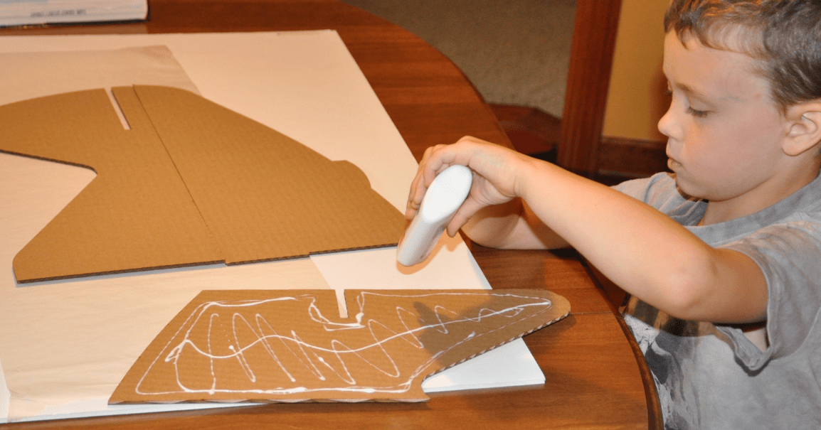 We gathered the supplies and dove in. I started by taking pictures to make an instruction manual to show the assembly steps, but quickly abandoned the idea as it took me too many tries to get a good photograph. Instead, I decided to leverage the model I already created in SOLIDWORKS, and generate the instruction steps in SOLIDWORKS Composer. Composer proved to be easy to learn and leverage. I finished the instructions using Microsoft Publisher. The PDF instruction set is available below. The use of Elmers white glue-all was a good choice because, in some cases, there was more glue than cardboard when the boys helped. The glue also dries slowly allowing the parts to be repositioned making sure everything was set and aligned properly.