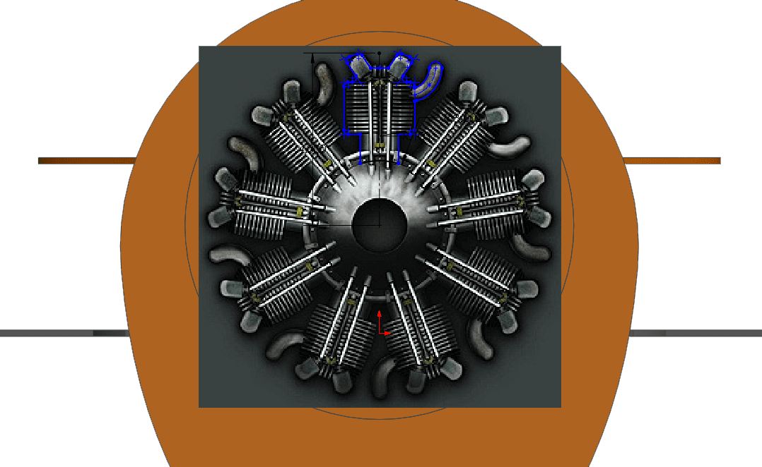 Throughout the model I paid close attention to the details of the real P-47 and tried to incorporate them into the costume. For example the P-47 was designed around a 2000 Hp. 18 cylinder Pratt & Whitney Double Wasp radial engine. Using a sketch picture I was able to scale a front view of the real engine. I used three layers of cardboard to layout the detail of the costume’s dummy engine.