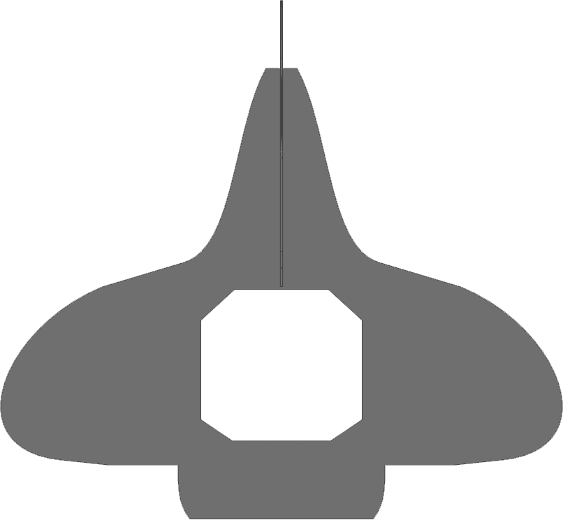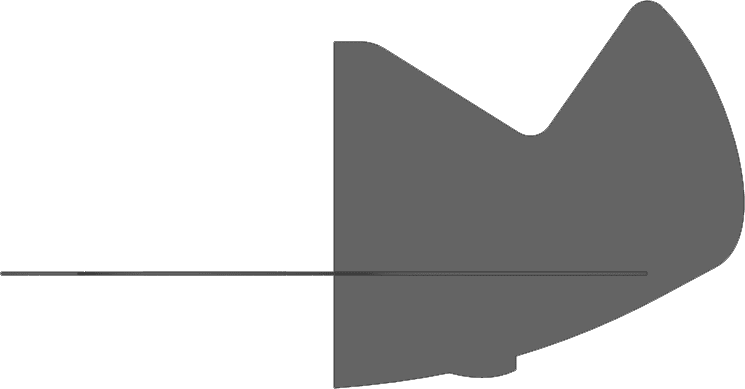 I started by laying out the wing profile making quick use of the dynamic mirror command. Because the wing will connect the front and rear fuselage sections the wing will be a laminate of three layers of cardboard. This will add rigidity to the structure, and give the plane a resistance to any unwanted bends, and dents. Once the wing was laid out accommodating the 10” diameter cylinder at the cockpit location, the next step was to tackle the fuselage and rudder portion of the P-47. I wanted to keep the tail as scale as possible, and keep details in profile like the underside turbo-supercharger outlet door (the little bump on the bottom). Interference was built into the model as I had not yet determined how the parts would slot together.