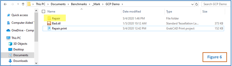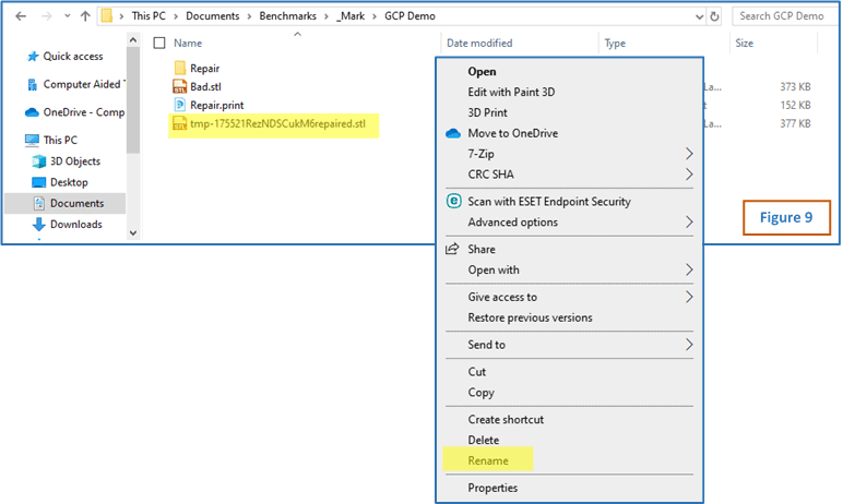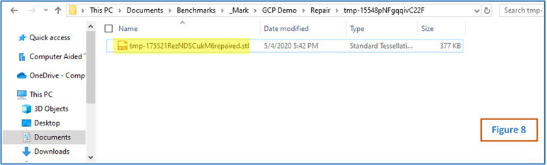 Open the folder and here you will find the repaired STL file, beginning with “tmp-“ and ending with “repaired.stl” (Figure 8).