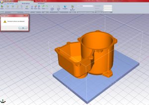 Once your file is created, you will normally bring it into Objet Studio program, and if you run the Verify tool, it will check to see if it can spot any errors in the part. If it does, it will highlight the part in another color other than the default color for the material you have selected. In this case, it turns our part orange to indicate it has issues.