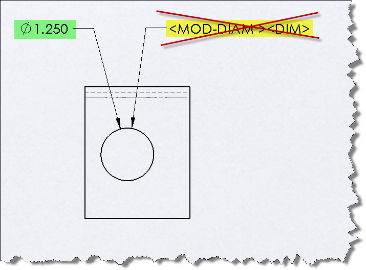 Why do I see "< MOD-DIAM>" instead of the Diameter Symbol?