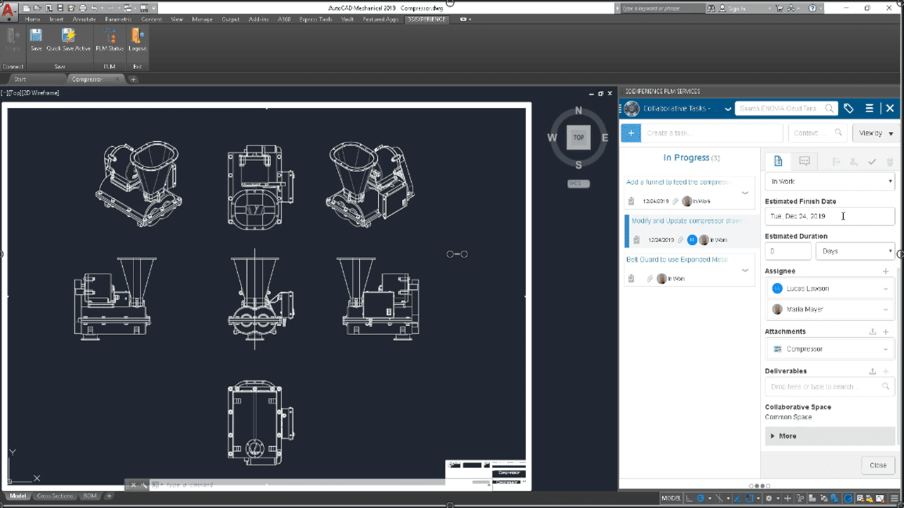 Collaborative Designer for AutoCAD enriches the design environment with embedded capabilities to improve productivity. From within AutoCAD, designers can save data to the platform, access management capabilities such as maintain revision history, manage tasks, access related documents and organize content.
