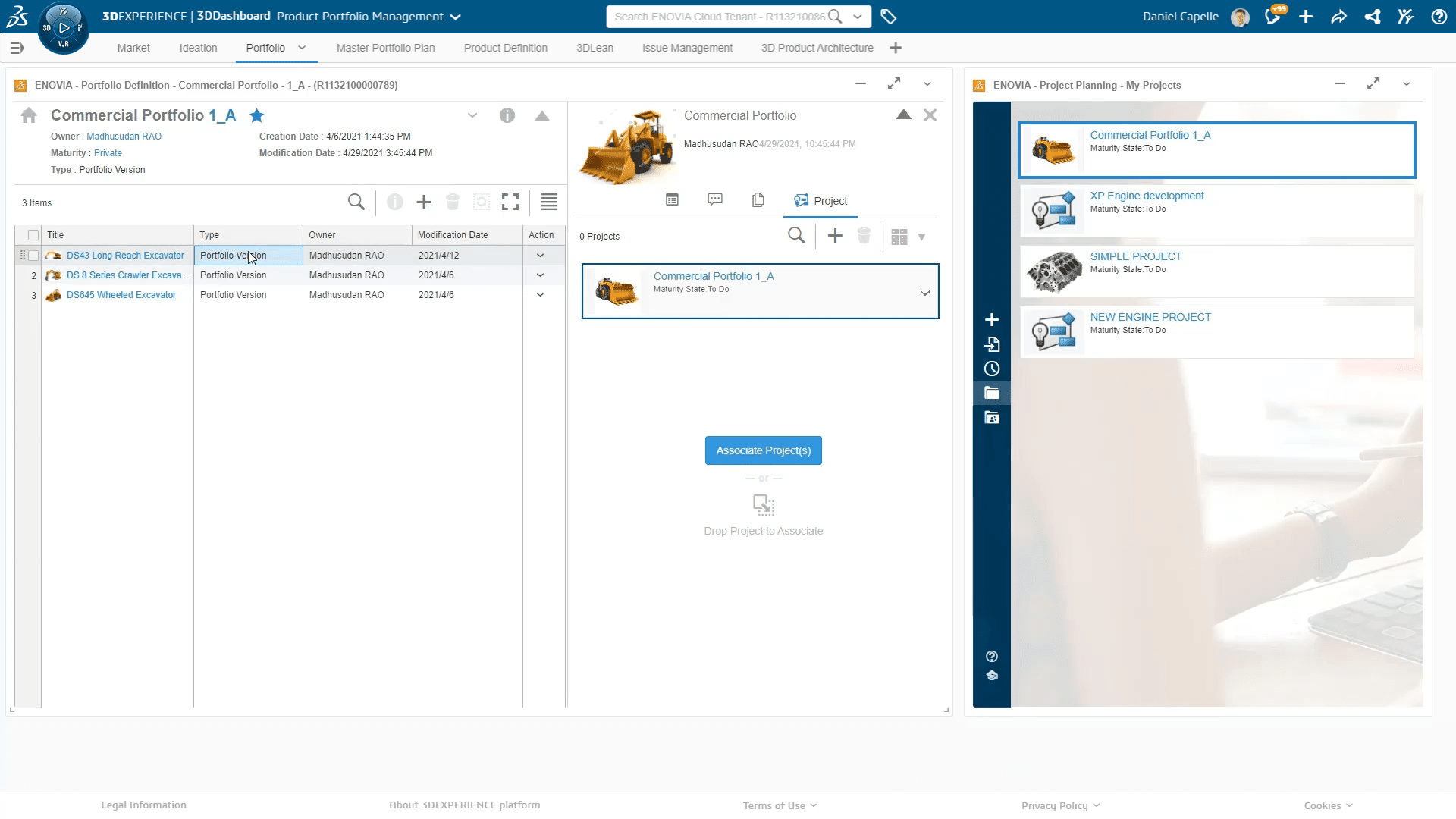 Align portfolio definition with product development process by associating project plans and product configurations as sellable items