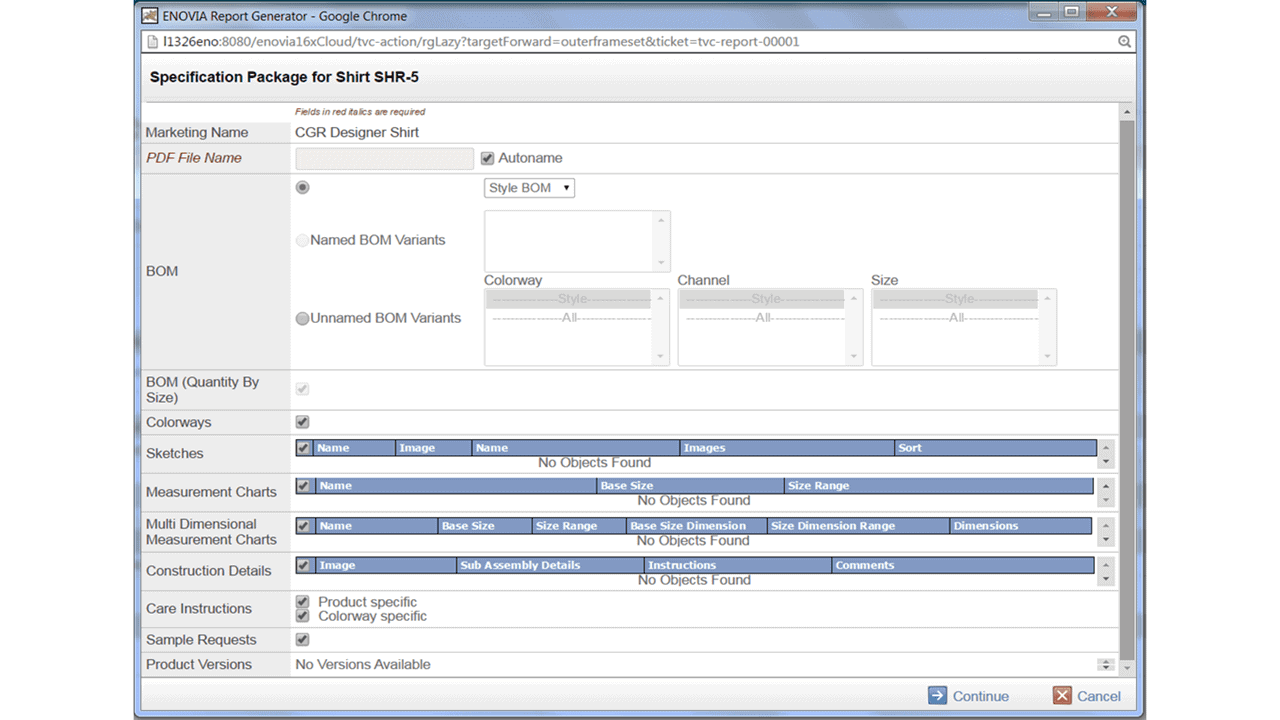 - ENOVIA Business Administrators can use “Customization & Specification” to create UI components that Report Generator administrators can leverage to create new report templates