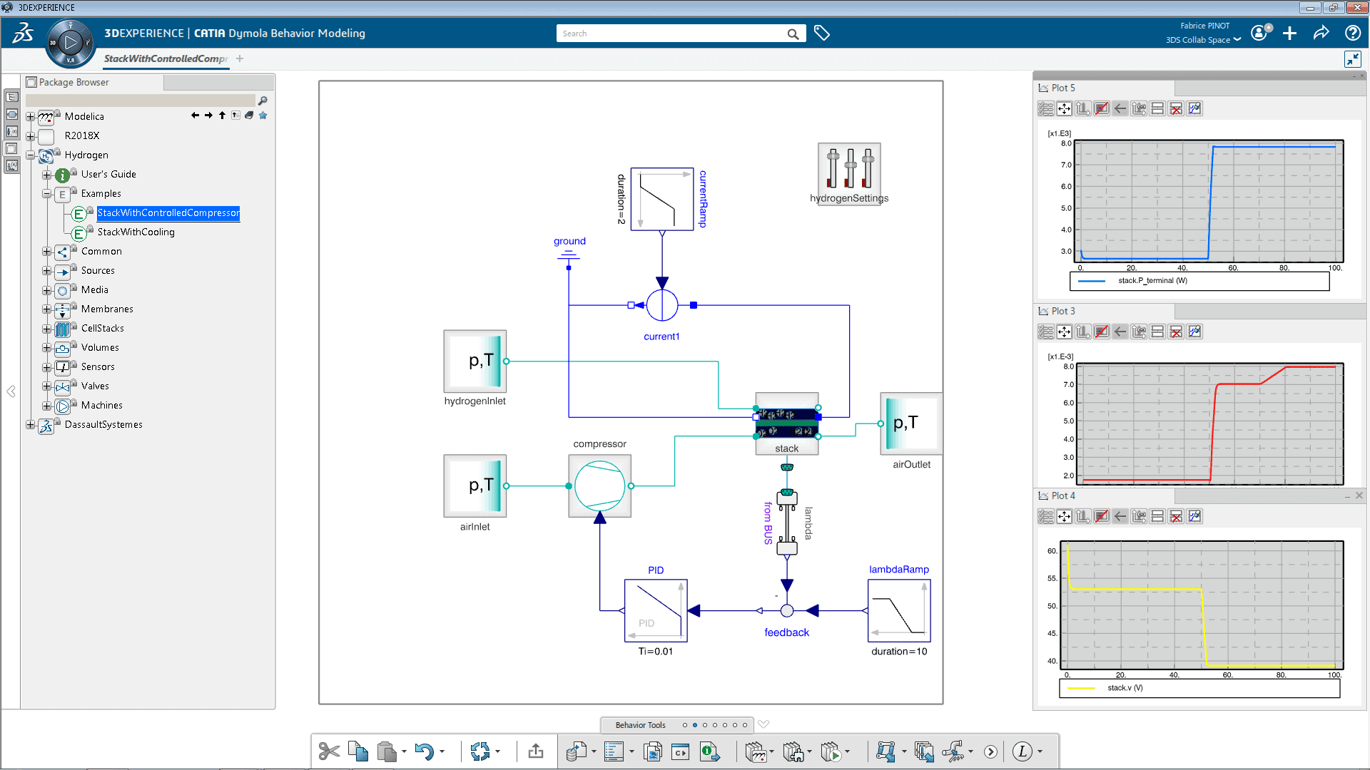 The Hydrogen library is targeted at modeling and simulation of polymer electrolyte membrane (PEM) fuel cell stacks and fuel cell system. It can be used for any fuel cell that works with pure hydrogen and moist air. It is used for pre-design, control strategy evaluation, or loss analysis.