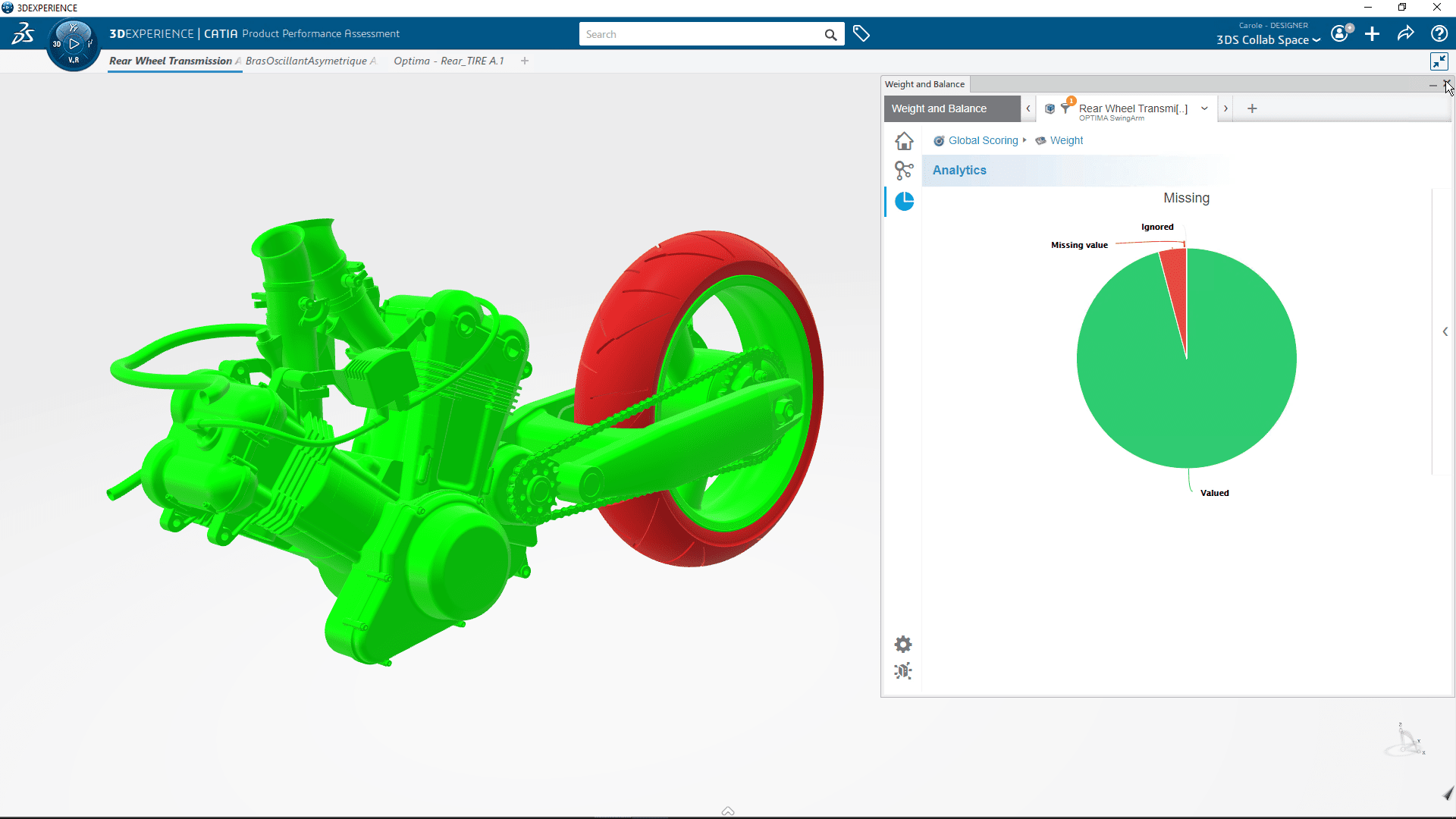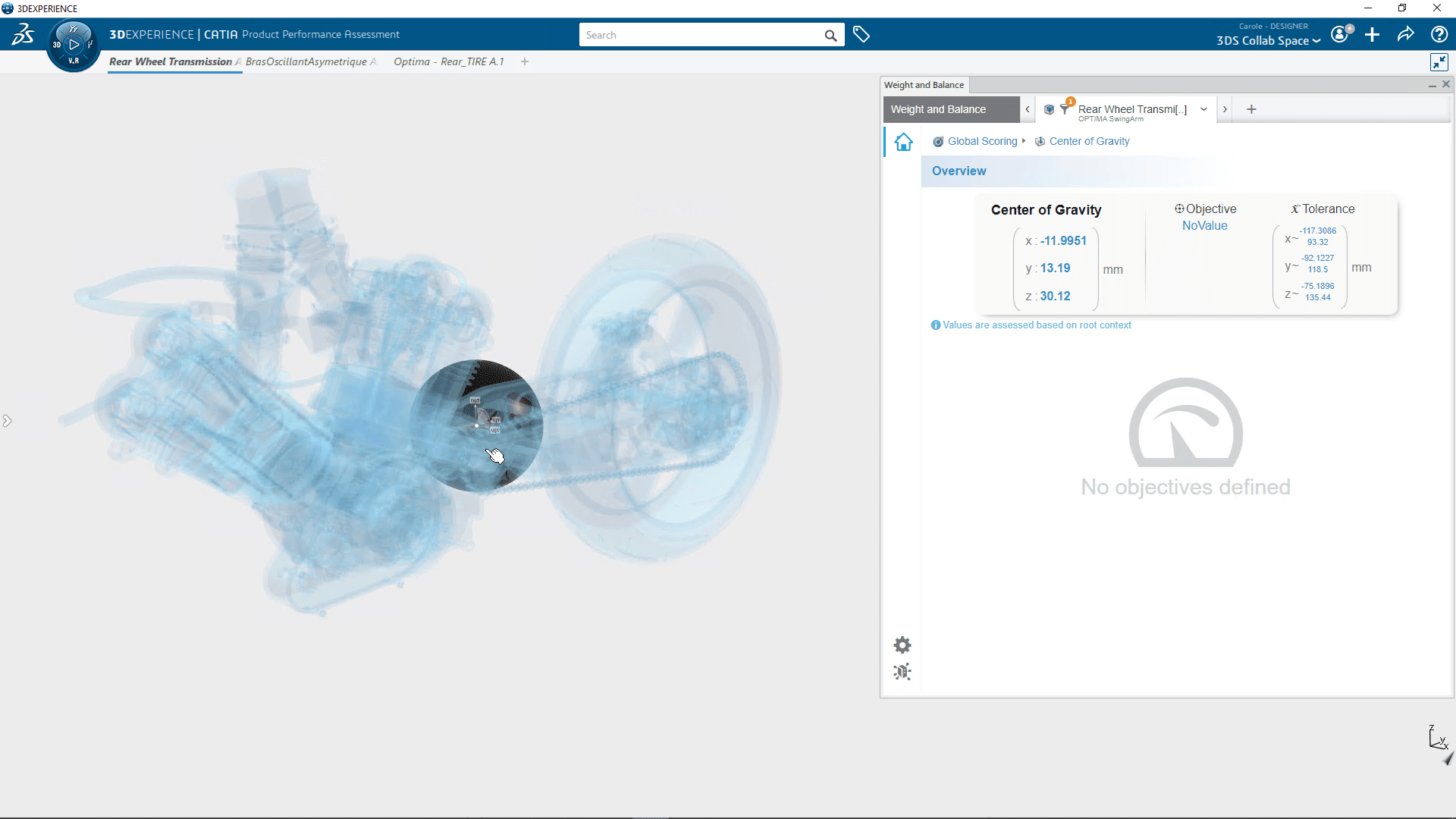 Valuate, analyze and respect, Weight and Balance Metrics and Targets, in 3D configured product definition, in collaboration with weight manager.
